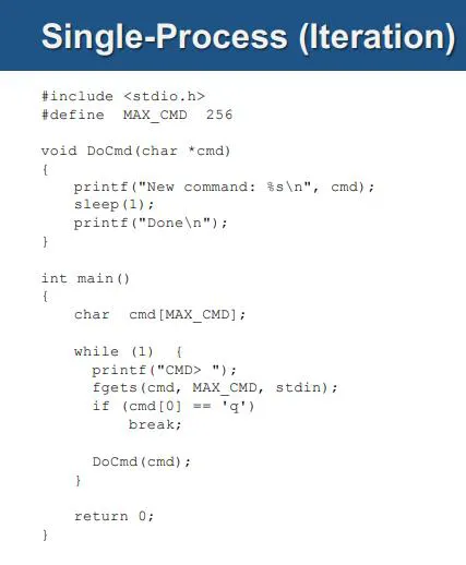 싱글 프로세스/멀티 프로세스/멀티 스레드 비교: DoCmd 함수를 수행하는 형태를 비교한다.