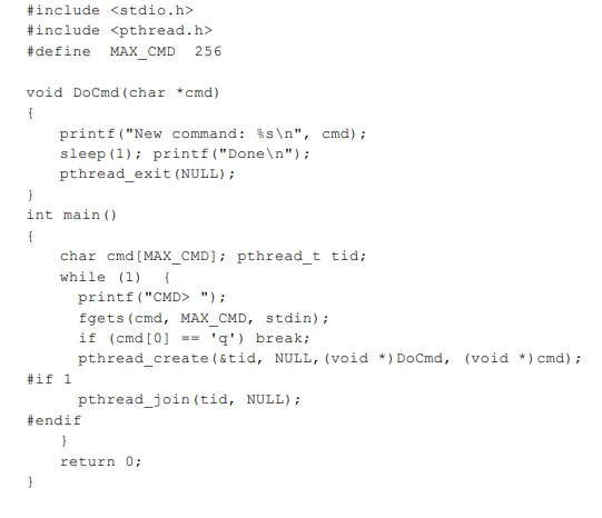 스레드 생성: 싱글 스레드는 함수1 수행 후 함수2를 수행하는 순차적인 형식이다. 멀티스레드는 스레드를 함수 단위로 구현한다. 함수1, 함수2를 pthread_create()와 같은 시스템 콜의 인자로 넘겨줘서 스레드를 생성해서 병렬적으로 동작하는 것처럼 구현한다. 2개의 함수의 스레드를 만들면 메인 스레드를 포함해서 3개의 스레드가 존재하는 것이다. 보통 멀티스레드 환경에서는 스레드로 만들 함수들을 무한 루프로 구현한다. pthread는 POSIX 표준을 따르는 스레드와 관련된 라이브러리이다. pthread_create, pthread_exit, pthread_join 등의 함수가 존재한다. join은 멀티프로세스에서 동기화를 위해 사용한 wait과 동일하다.