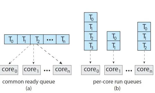 Multiprocessor Scheduling: 코어가 여러 개 있는 경우의 스케줄링 방법. Symmetric과 Asymmetric이 있다. 요즘은 대부분 symmetric을 사용한다. 멀티 프로세서에서 중요한 것은 각 코어마다 밸런스를 잘 맞추는 것이다. 한 코어에 태스크가 집중되고 다른 코어는 유휴 상태이면 유휴 상태의 코어에 작업을 옮겨 로드 밸런싱하는 것을 마이그레이션이라고 한다. 바쁜 코어가 주는 것을 push migration, 받는 것을 pull migration이라고 부른다.
