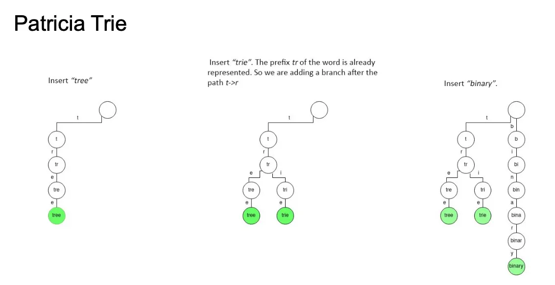 사용 사례: 패트리샤 트리는 이더리움 블록체인뿐만 아니라, 다양한 응용 프로그램에서 키-값 저장소, 라우팅 테이블, 자동 완성 기능 등 여러 용도로 사용됩니다.