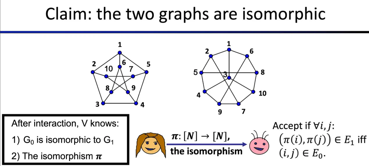 isomorphic점만 움직여서 같은 모양을 만드는 문제는 모든 관계를 다 확인해봐야하는 복잡한 문제라서 시간이 오래 걸린다. prover가 claim에 대해서 어떤 변형이 일어났는지 증명값을 던져주면 verifier가 검증할 수 있다