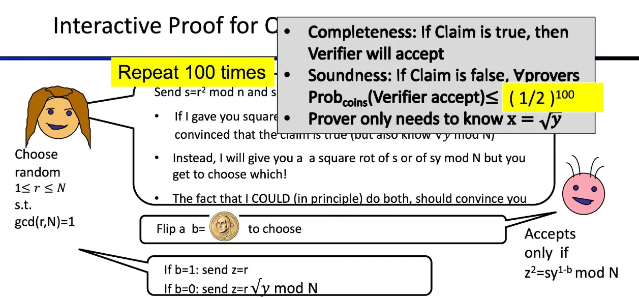 prover가 n=pq인 p와 q를 보내고 n=pq인지 검증자는 검증한다.