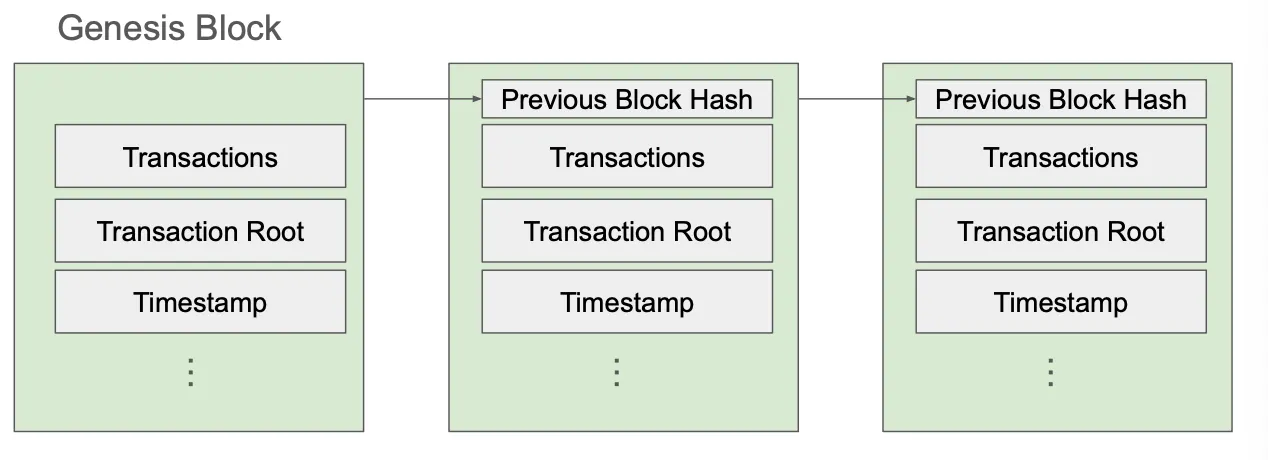 genesis block 이후의 블록들은 이전 블록의 해시 데이터를 가지고 있다.