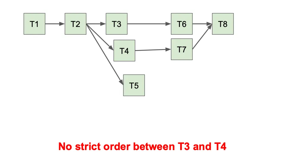 t5는 레퍼런스되지 않은 잊혀진 트랜잭션으로 fence쳐서 t5먼저 처리하고 t6, t7이 실행됨