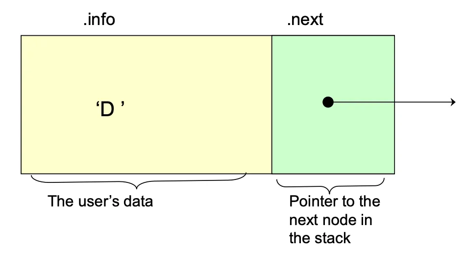 info에는 user가 넣을 데이터가 들어가고 next는 다음 노드의 위치를 가리키는 포인터가 들어간다.