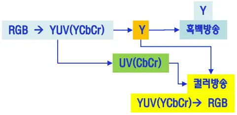 RGB정보를 YUV로 바꿔서 전송하고 다시 RGB로 복원하는 형식으로 사용