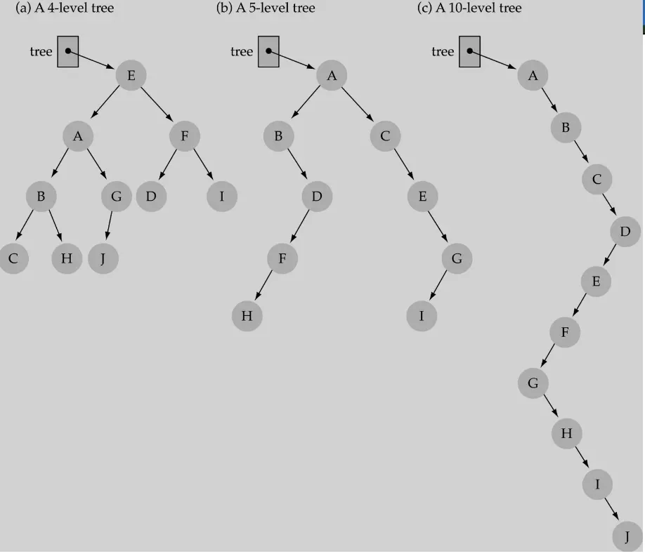 binary search tree의 형태는 insertion이 일어나는 순서에 따라서 다르다.