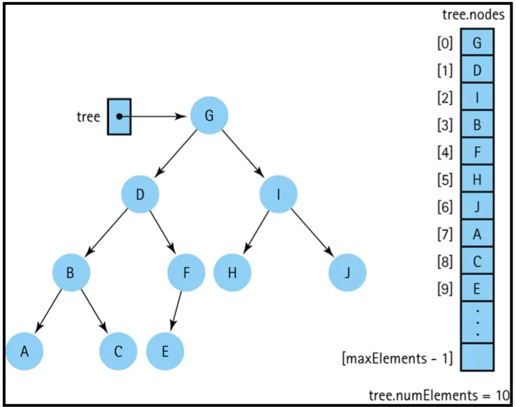 이진 트리는 배열로 표현될 수 있으며, 이 경우 각 노드는 배열의 인덱스를 통해 접근할 수 있다.