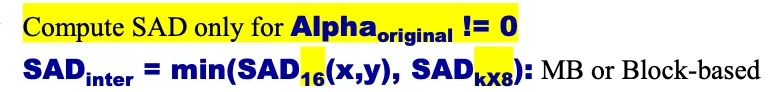 Shape내의 Pixel값에 대한 motion만 처리한다. Alpha ≠0이 아닌 경우에만 SAD계산한다.