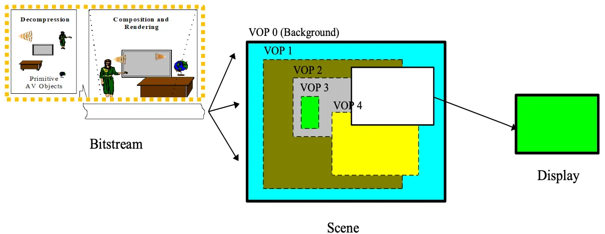 배경과 각 오브젝트 분리해서 따로 보내고 디코더에서 처리할 수 있다. 사용자와 interactive하게 표현할 수 있다.