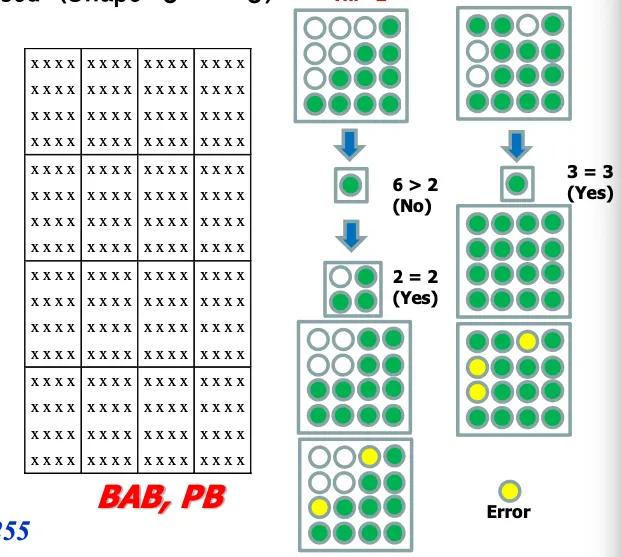 16x16 MB를 16개의 4x4 BAB(Binary Alpha block)으로 나누어서 구성한다. 각 BAB의 threshold ⇒Error를 허용하는 척도를 넘어서면 수정이 필요하고 그 이하는 허용한다.