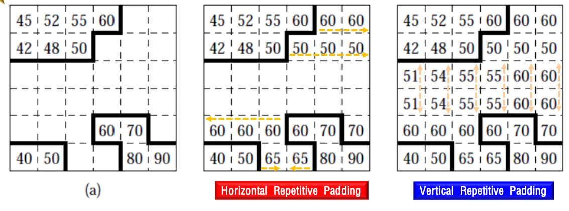 영상경계의 edge픽셀값을 padding해서 cost/error값 왜곡을 피한다.