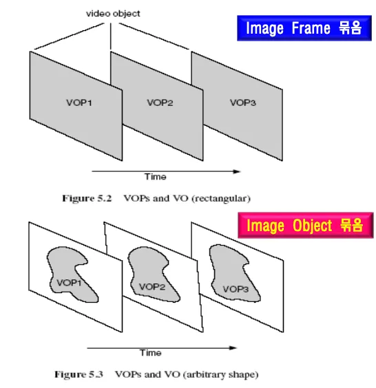 VOP는 비디오의 한 프레임, VO는 연속적인 image frame의 묶음