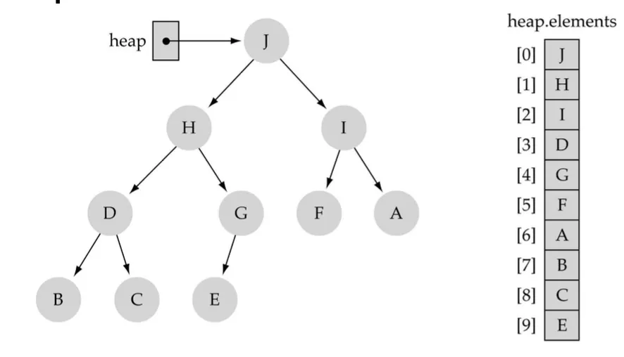 Complete binary Tree이므로 array로 표현하기 쉽다.