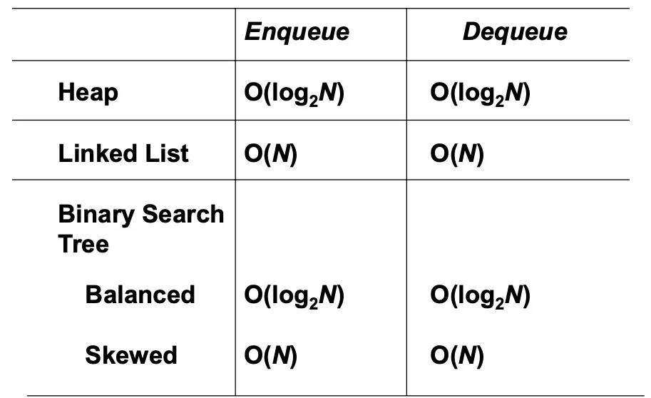 단점: 삭제(Dequeuing) 시 가장 높은 우선순위를 가진 요소를 찾기 위해 전체 리스트를 검색해야 하므로