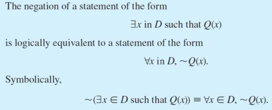 universal statement의 negation은 existential statement와 동일하다. 역도 성립한다.