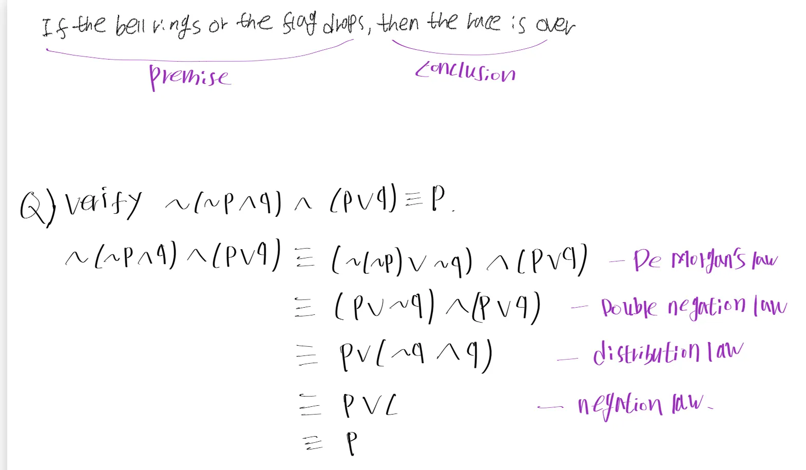 p: hypothesis, q: conclusion