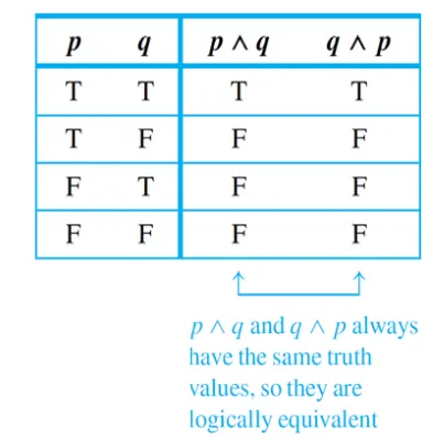 두 개의 statement form이 logically equivalent하면 동일한 truth table값을 가진다. P ≡ Q