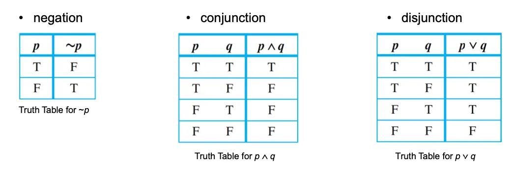 statement variable과 logical connective(~, ∧, ∨)로 구성된 statement
