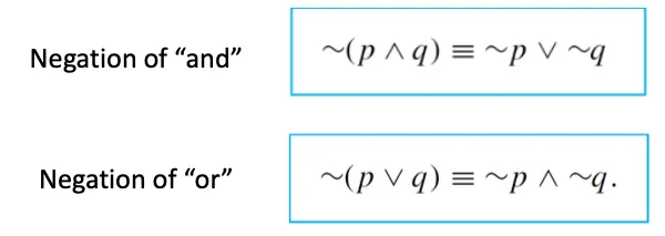 ~ (p → q) ≡ ~(~p ∨ q) ⇒ De Morgan’s law