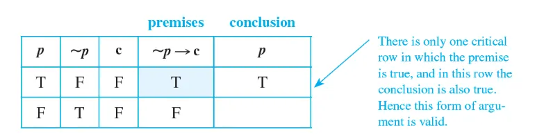 모든 critical row에서 conclusion이 true이면 그 argument form은 valid하다.