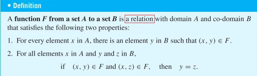 Relation F from A to B가 함수일 조건