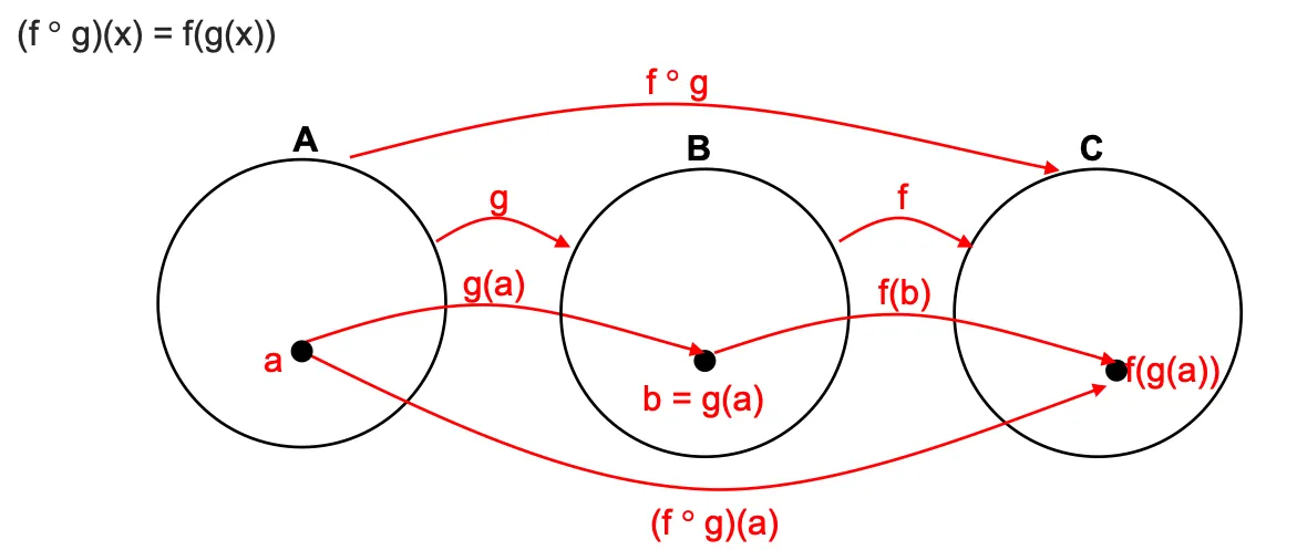 The composition (합성) can be formed only if the output of the first function is acceptable input to the second function. (첫 번째 함수의 출력 값이 두 번째 함수의 입력 값으로 받아들일 수 있을 때)
