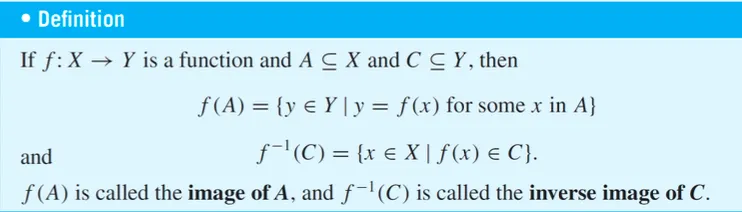 집합 X에서 집합 Y로의 함수가 주어지면, X의 부분집합의 모든 원소들의 Y로의 상의 집합과, Y의 부분집합의 모든 원소들의 X로의 역상의 집합을 고려할 수 있다.