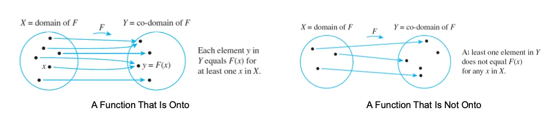 – When a function is onto, its range is equal to its co-domain.