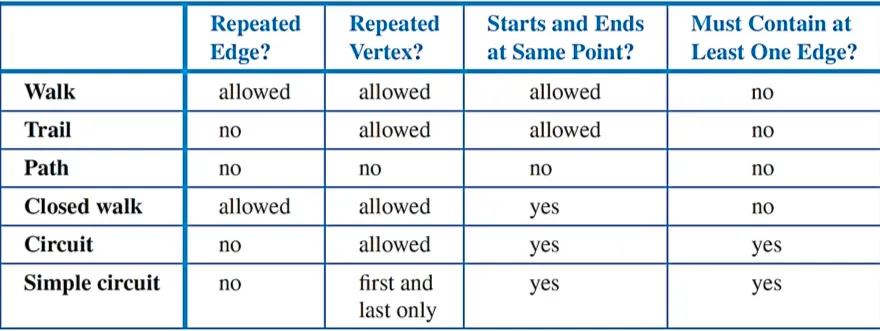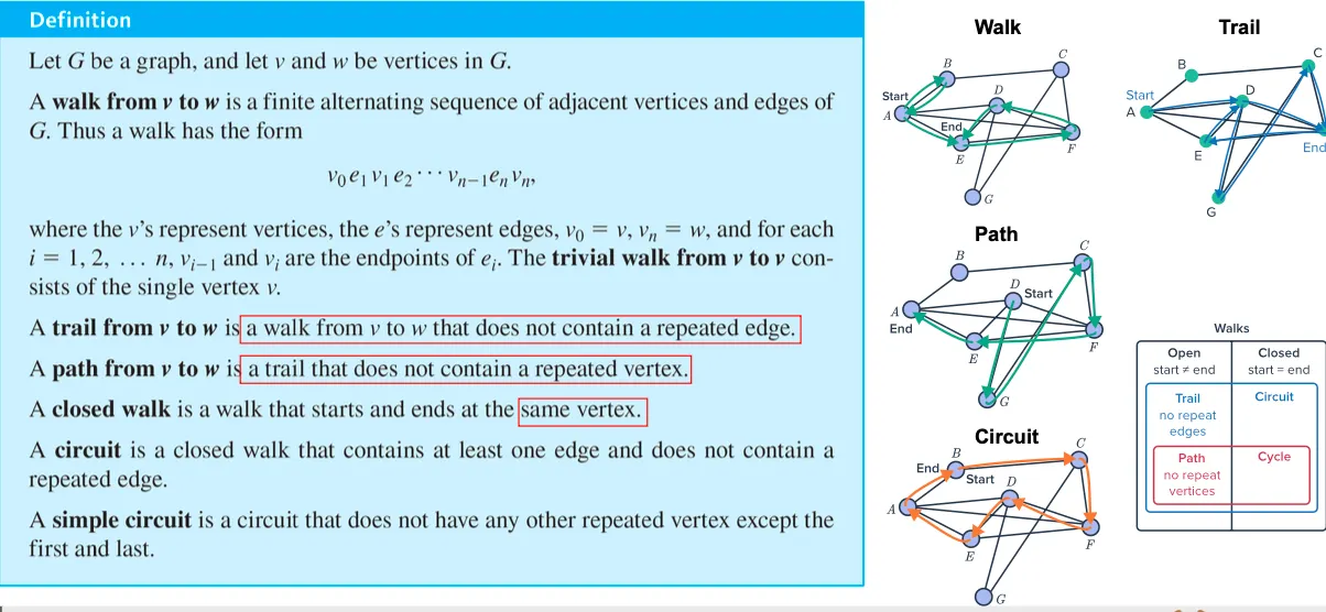 Definition of walk, trail, path, and circuit