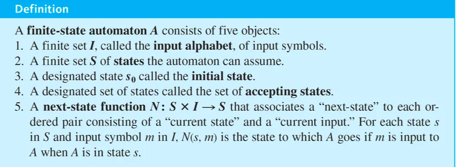 Each piece of input to a finite-state automaton leads to a change in the state of the automaton,