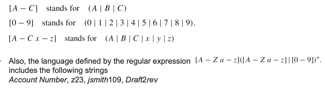 A number of shorthand notations have been developed to facilitate working with regular expressions