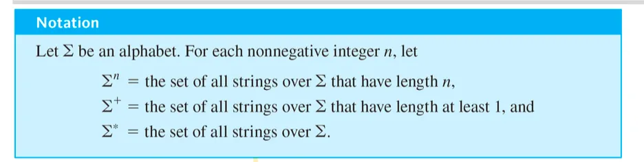 Σ+ is the set of all strings over Σ except for λ and is called the positive closure of Σ. (or Kleene plus)